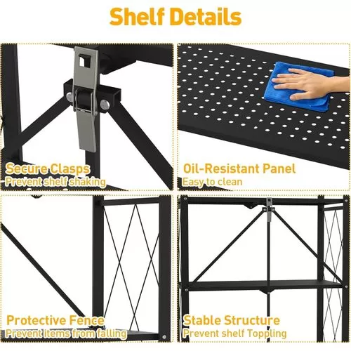 Key Features: 【Durable & Stable】: Made of thickened laminated wood panel with high glossy finish, waterproof, anti-scratch and easy to clean.Heavy duty powder-coated metal materials, which ensures stability and durability.X frame design adds more stability and durability of the kitchen cart. 【Dimensions】: L*W*H=35.4 *15.7*32.7 Inch.(L*W*H=90*40*83CM). There may be 1 inch difference in measurement since it is hand measured. Hope you do not mind it.There may be a little color difference due to different monitor settings. Thank you for your understanding. 【Ample Storage Space】: 1.Extra basket can store fruits and vegetables or some small kitchen necessities. 2.Five little hooks make it easier to hang cooking tools like pots, pans, utensils and etc. 【Multi-Function】: Perfect as a kitchen baker’s rack, microwave oven stand, kitchen storage shelf, spice rack organizer, baker’s rack, microwave stand, kitchen workstation shelf,office storage rack. Fitting in home & kitchen. Color:Black material:steel, epoxy powder coating Made of high quality material, it has good Performance. The products are affordable and cost-effective. The quality is guaranteed, so you can buy and use it at ease.
