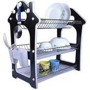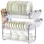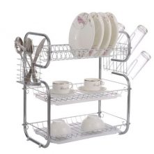 Tumoral Dish Drying Rack is a Perfect Kitchen Space Saver for you! An elegant 3-tier dish rack to organize your plates, cups, glasses, and utensils is a must-have in every kitchen. The upper tier can place up to 17 plates, the lower tier can place up to 18 bowls; The 2 sides are used for hanging cutting boards and utensils, keep your kitchen organized. Product Features: Material: Premium 304 Stainless Steel, Rustproof and Long Lasting Dimension: Length X Width X Height:16.7 inch X 10 inch X 15.3 inch Distance from the lower rack to the first drain tray: 8 inches Easy To Assemble: This space-saving dish rack is very easy to assemble, we provide installation instructions for your reference and operation.