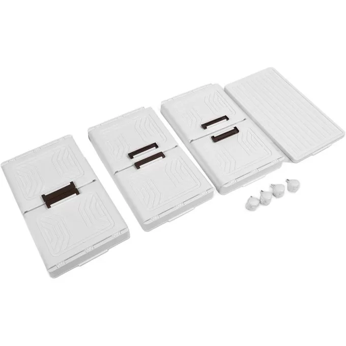 Our versatile storage bins can accommodate various items such as clothing, bedding, or books. When not in use, these containers can be conveniently folded down in four simple steps. Saving you space and perfect for any storage situation. Notably each box has special grooves at the top and bottom for safe stacking and comes with four rotating wheels for easy movement. Made from high-strength, shatter-proof polypropylene (PP), they provide superior durability and protection for your items. Multifunctional Use : These versatile storage bins are designed to accommodate a wide range of items, including clothing, bedding, books, snacks, and other miscellaneous items. They are also ideal for RV trips and camping adventures. Foldable, Stackable, and Mobile: Our storage containers can be easily folded in four simple steps when not in use, making them compact and storage-friendly in any space. Each bin features special grooves on the top and bottom for secure stacking and four rotating wheels for effortless mobility. Large Capacity: With dimensions of 20.5 inches (L) x 12 inches (W) x 12.12 inches (H) (3.12 inches when folded), these storage bins offer a spacious capacity of up to 48 quarts (12 gallons). They comfortably hold everyday items like cleaning supplies, snacks, office materials, and seasonal decorations. Their robust construction can support weights of up to 150 pounds (70KG), of weight, making them suitable for heavier items like books and tools. Easy-Access Doors : Our innovative design includes dual front doors, providing two convenient ways to access your belongings. Additionally, the top cover can be easily removed for quick access to larger items like clothing and blankets. High-Quality Materials : Crafted from high-impact, shatter-resistant Polypropylene plastic (PP) material, each storage bin ensures exceptional durability and protection for your belongings, whether at home or on the go.