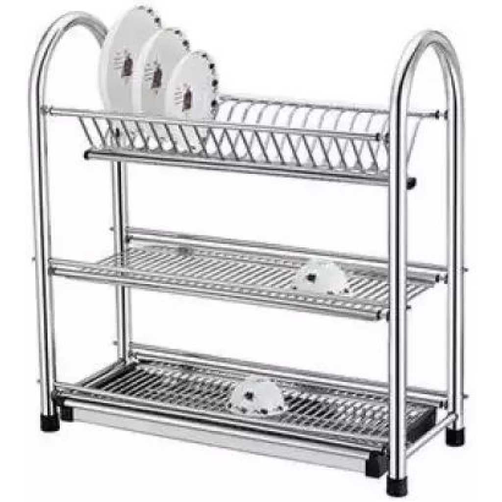 Key Features: 3-Tier Dish Drying Rack Dish Drainer Kitchen Stainless Steel Storage Stand- Silver. Made from high-quality aluminum material Durable and will never rust Comes with removable plastic drip trays Keep your dishes, glasses, and utensils properly organize It helps to keep your kitchen area clean and tidy It is very simple to use and clean