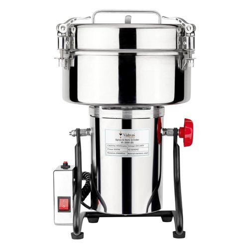Key Features: Capacity: 3000gm (Depends On material) Power : 5000W Voltage: 220V~240V/50HZ Rotate Speed: 25000 R/m Type: Swing Weight: 12Kg High Speed and Efficiency: The 5000 Watt motor ensures that the grinder operates at high speeds, making it quick and efficient in grinding spices. This means you can prepare your spices in a matter of seconds. Versatile Grinding: With this powerful motor, you can easily grind both soft and hard spices. It’s suitable for grinding everything from fine powders to coarse textures, depending on your culinary needs. Large 3000gm Capacity: Such machines typically come with a generous grinding chamber, allowing you to process a significant amount of spices at once. This is especially convenient when preparing larger meals or batches of spice blends. Safety Features: Many modern spice grinder machines come with safety features, such as automatic shut-off mechanisms and protection against overheating, to ensure safe operation.