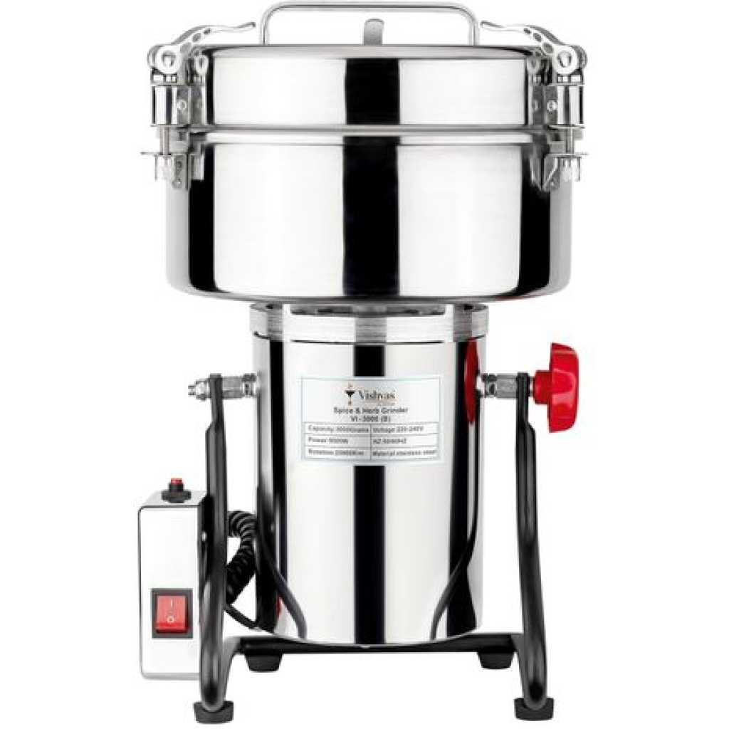 3000g Instant Large Commercial High Capacity Dry Masala Powder Spice Grinder Machine For Business Mixer Grinding Mill For Spices, Herbs and Dry Fruits Grain Crusher Stainless Steel -Silver