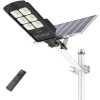 Key Features: 300W Solar LED Outdoor Waterproof Security Street Light With Remote. Rated power – 300W. LED bead- 300pcs, 2835 chip. Lumens – 4000lm. Solar panel – 40W/5v. LifePo4 battery – 36000mAh. Mounting height – 4 to 6 metres. Color temp – 6000k cool white. Waterproof capacity – IP67. CRI > 85. Charge time 6 to 8 hours. Lighting time – light on at dusk, light off at dawn auto.