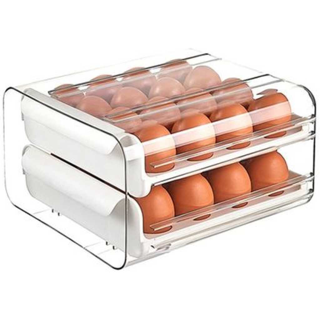 Key Features: BPA-free Made for Fridge too Portable and Safe Stackable Egg Holders Material: Food grade pp High Quality: This kitchen plastic eggs tray is made of food grade material, safety and non-toxic, environmental friendly and durable. Simple and neat appearance, also easy to clean, just use warm water and clean it. 32 Eggs Tray: Our fridge organizer with lid allows you to put 32 eggs into refrigerator without any hassle, also easy to take-out, always take the eggs out from the front place and ensure the oldest eggs would be used first. Easy to Use: The eggs drawer for refrigerator with double layer design keeps the eggs more stable in the storage box, easily to slide the tray. The size of this eggs holder is about 23.5×21.5×13.5cm. 4. Widely Application: Perfect to use in the restaurant, table, kitchen, outdoor picnic, barbecue and everywhere you need to put the eggs, also help you save kitchen space and put more food in the refrigerator. With this eggs storage box, prevent the eggs from shaking, breaking and dropping.
