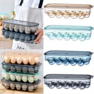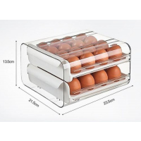 32 Eggs Tray Storage Box 23.5×21.5×13.5cm Double-deck. PERFECT SPACE SAVING SOLUTION – The drawer is a great way to store eggs in your fridge, It minimize the space that was being taken up by the original styrofoam and cardboard cartons. KEEP EGGS SAVE AND FRESH – Conical Groove Design, each egg is placed separately, protect eggs from getting smack or cracked. By the way, put the eggs upright, can keep them fresh longer. Conical Groove Design Each egg is placed separately, protect eggs from getting smack or cracked. Put the eggs upright, can keep them fresh longer. Large Capacity Hold up to 60 eggs. They’re also able to accommodate the larger duck eggs which don’t fit in regular cartons Convenient & Handy These drawers can give you easy access to the eggs and helped to organize your fridge. What a awesome spacesaver!