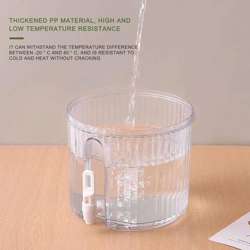 Key Features: Large Capacity: 3 L/1 Gallon large capacity refrigerator beverage dispenser is perfect for friends garing, camping, traveling. Easy to Use: Press the faucet, water is more convenient, faucet with rubber ring, blocking, sealing does not leak.Our water infuser dispenser is convenient to use. Temperature Resistant:Fridge Water Dispenser has High and low temperature resistance,can withstand -20° C -80 ° C temperature difference,cold and heat resistance, no cracking,can be assured to use. Materials: This Refrigerator Cold kettle is safe to use, sturdy and durable, because it is made of the food-grade PP material, not afraid of temperature differences Wide Applications: Summer beverage container for fridge can hold any beverage such as juice, cold water, iced tea, milk, beer, lemonade, etc. It can be used for all parties and outdoor events.