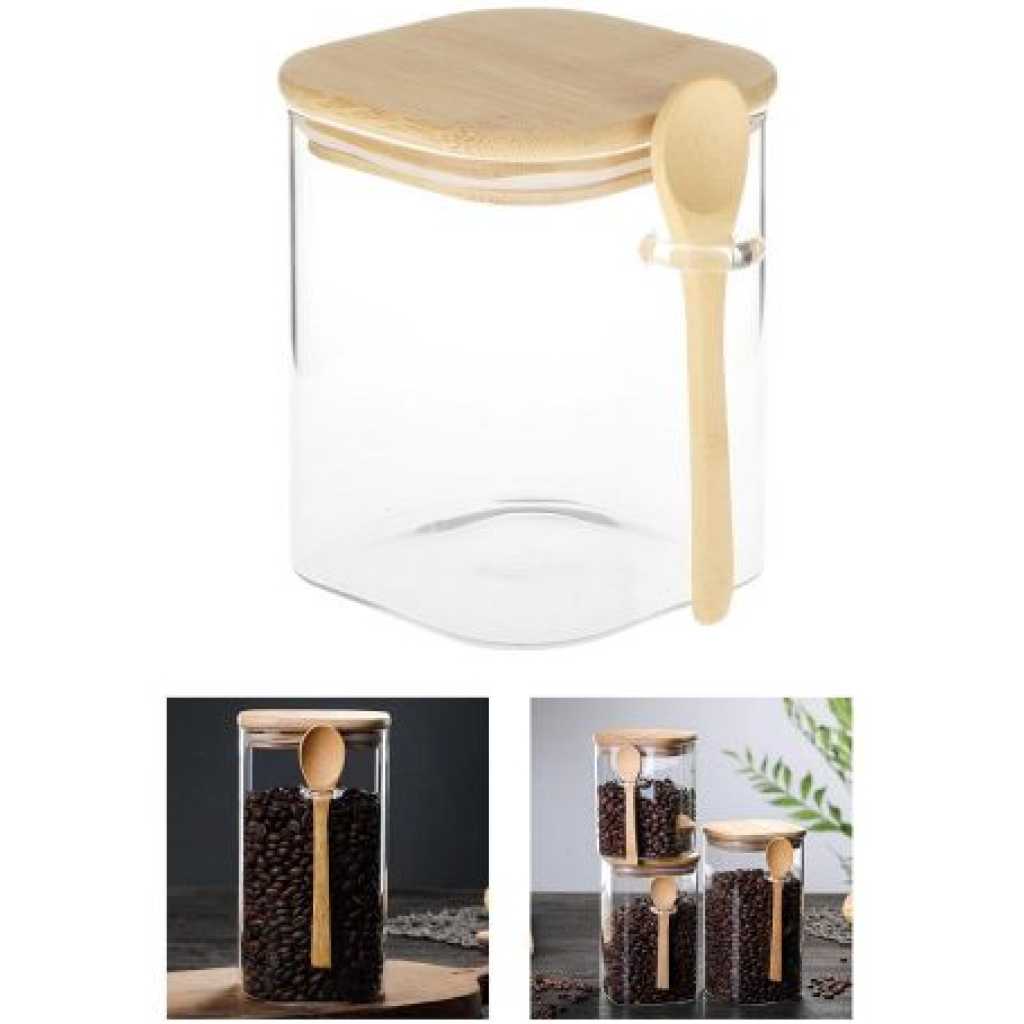 3PC Square Airtight Storage Pantry Food Glass Jars Bamboo Clamp Lids- Clear. Why hide your pantry items behind closed doors when these modern glass containers with bamboo lids add understated style to your kitchen? They won’t hold large quantities like a full flour jar, but they’re perfect as a nuts container, herb container, or small candy jar for display or kitchen storage. Some glass pantry storage containers with lids only provide one thing but these glass jars with wood lids are both beautiful and functional in your pantry. The star of the show is the hermetically sealed clamp lock and BPA-free seal that keeps your food fresher than ever while preventing odors from escaping. In fact, we couldn’t make them any more airtight! The JoyJolt Clamp Lock kitchen canisters range comes in 12 fl oz, 19 fl oz, and 27 fl oz. So whether it’s lentils or pasta, coffee or tea, there’s a kitchen jar to fit your food! Can’t find the motivation to get organized? These glass jars with wood lids will inspire you to get started today. Herb containers, coffee jars,s or salt jars! Unleash your inner Marie Kondo with tidy rows of matching glass storage jars and remember to take a social media-worthy photo of your newly organized pantry! This glass jar with bamboo lid 2pc set makes a lovely and practical gift. Gifts for women, gifts for men, gifts for mom, or gifts for anyone with a kitchen! Bring them organizational joy with Jars by JoyJolt! • 3 Borosilicate Glass Jars with Airtight Bamboo Lids • 12, 19, or 27 fl oz capacity • Airtight, Hermetically Sealed Lids • Lightweight, but Durable • Easy To Clean: Wide mouth that’s easy to hand wash • Gift Boxed with Secure Padding