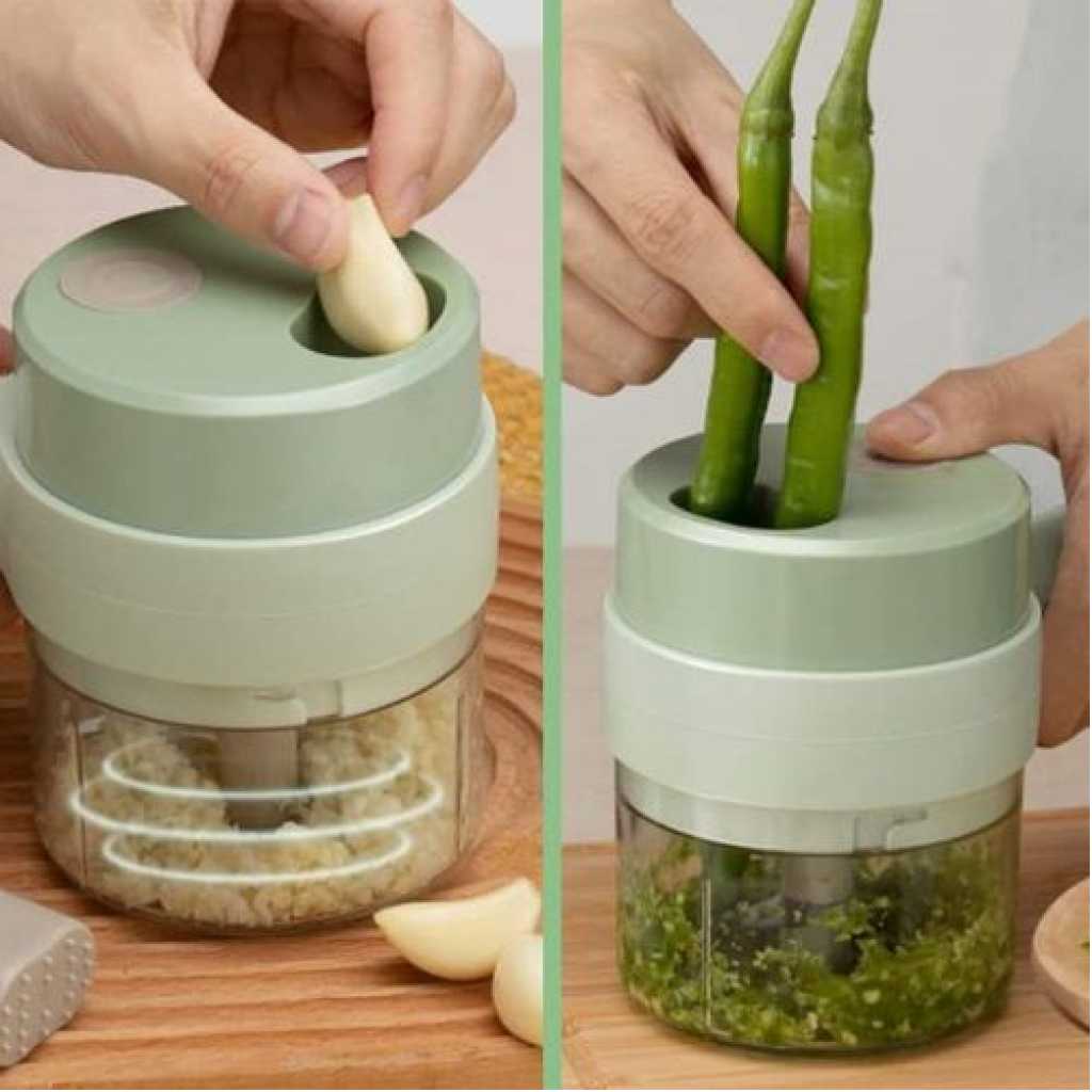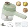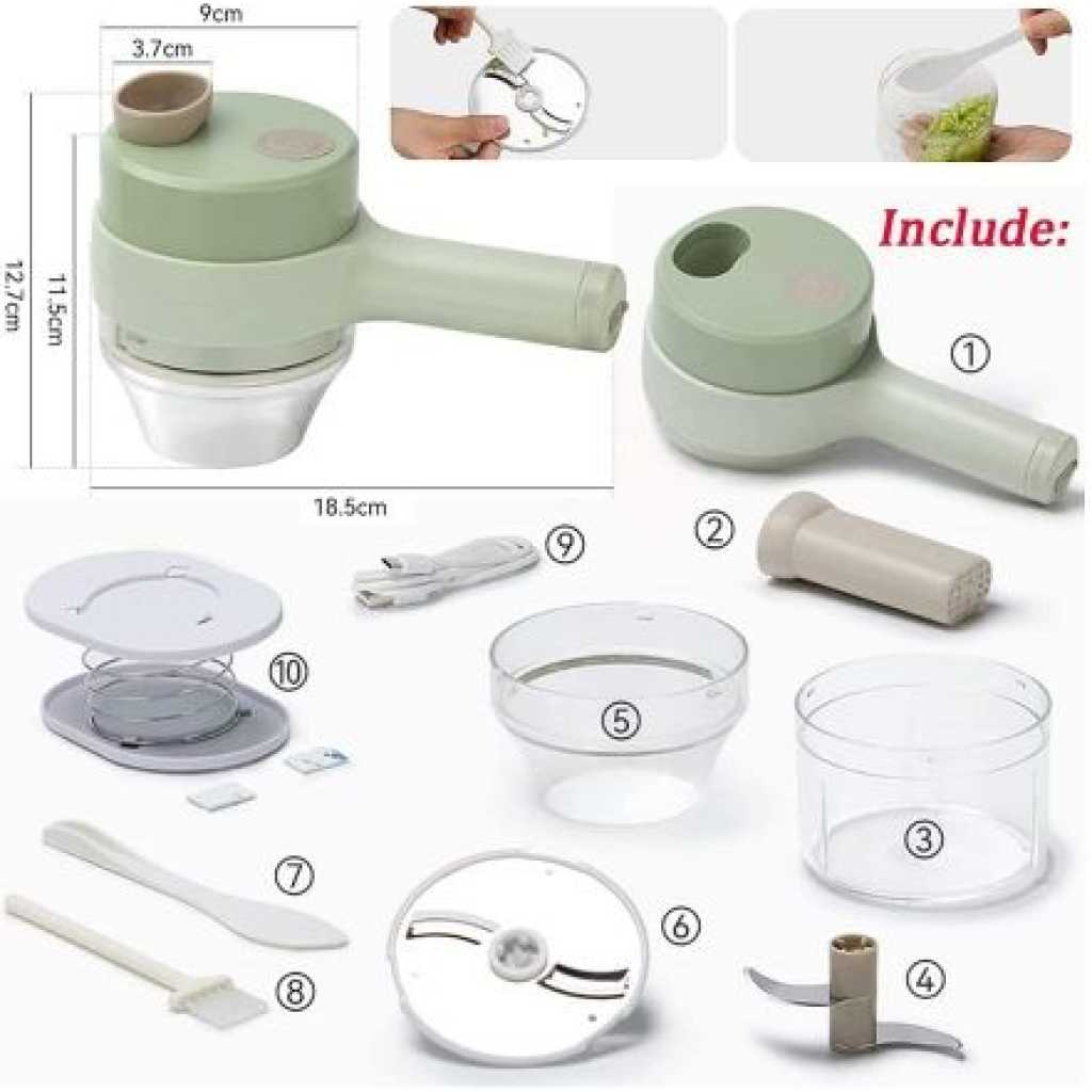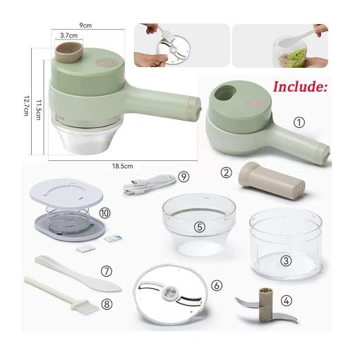 4 In 1 Electric Handheld Cooking Hammer Vegetable Cutter Set Food Chopper Multifunction Vegetable Fruit Slicer For Garlic Pepper Chili Onion- Green Name: 4 in 1 Electric Handheld Cooking Hammer Vegetable Cutter Set Food Chopper Multifunction Vegetable Fruit Slicer, for Garlic Pepper Chili Onion Celery Ginger Meat with Brush Material: Plastic Product Breadth: 10 Cm Product Height: 10 Cm Product Length: 10 Cm Net Quantity (N): Pack Of 1 4 in-1 Handheld Electric Vegetable Cutter Set Warm Tips EasyPower button to use, with our electric vegetable chopper, you can now say goodbye to manual chopping! All you need to do is add the ingredients, turn on the switch and wait for 5-30 seconds. For the first use, please fully charge the host. And then, the blue indicator light will be on. The product is equipped with a USB Type-C, and the power adopter selects 5V/1A or other USB interface devices First press the cutter head against the cup body, then put the food into the cup, and cover the main engine the feeding port can add ingredients while crushing. Believers Group 4-in-1 Electric Vegetable Slicer: Handheld Electric Vegetable Slicer Set includes 4-in-1 functions for slicing, cooking, peeling, and cleaning brushes. With it, you can have an electric vegetable slicer and an electric meat grinder at the same time. One machine is multi-purpose, convenient, and fast. The Handheld Electric Vegetable Cutter Set handles whole foods without pre-cutting. The portable vegetable cutting machine has a round filling hole, which can be directly inserted into long strips of ingredients such as peppers, cowpeas, and yams, eliminating the tedious steps of opening and twisting the cap. The multi-function vegetable cutter feels comfortable and breaks the hovering and click mode of the traditional electric garlic paste. The ergonomic design does not tire your hands. The vegetable cutter protects your fingers from the blade when cutting vegetables. You no longer need any slicer to cut vegetables. Skill Product Description: Color: green Material: ABS+PP+PC+stainless steel Size: about 20.5*9.5*8cm/8*3.7*3.1in Weight: 490 grams Key Features: 4 In 1 Electric Handheld Cooking Hammer Vegetable Cutter Set Food Chopper Multifunction Vegetable Fruit Slicer For Garlic Pepper Chili Onion- Green LONG BATTERY LIFE: Because this vegetable cutter has a built-in 1500mAh lithium battery and a Type-C charging interface, it has a worry-free battery that does not need to be replaced frequently. One-key cleaning design: After use, you can add detergent to wash the garlic chop, stir for 5 seconds and rinse with running water, which is convenient and quick to clean. ECONOMIC TIME: Home cooking will be easier and easier with these slicers evenly, and safely, with flexible blades, and cut fruits and vegetables of all shapes and sizes in the shortest possible time. HIGH-QUALITY MATERIALS: This electric food chopper is made of ABS + stainless steel material, which is light and durable. Stainless steel blades and serrated edges make ingredients more delicate. Let you eat healthily and feel reassured WIDE APPLICATION: With a closed container and an unsealed spray cup, this mini food processor is a vegetable chopper for food like garlic, ginger, salad, and onions. It is a vegetable cutter for cucumbers or bananas.