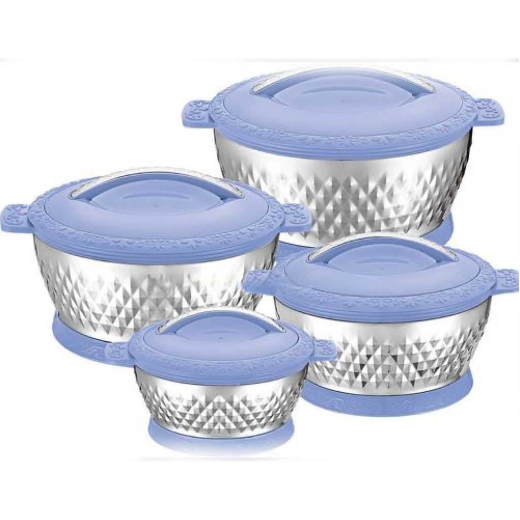 Key Features: 4 Piece lunch boxes Easy to clean food-safe materials – stainless steel inside and plastic outer insulation Helps retain temperature (hot or cold) and nutritional value of food for up to 6 hours Easy to store Material of plastic 4 Piece Casseroles