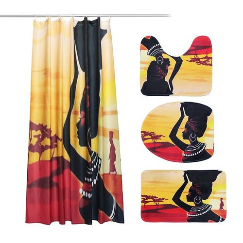 Key Features: (1)Printing Polyester Bath Curtain Material: Polyester Fiber Style: African Girl Size: 70.8″ x 70.8″/60″x71″ Features: Fitted with C-shaped curtain hooks. Designed to fit standardized bath tubs. Prevent water from splashing out of the shower stall. Ideally suits most standard sized bathrooms; just hang it on steel tube. Images imprinted using heat dye sublimation technique for lasting effects. Package Included: 1 x Shower Curtain 1 x Bag Of Installation Accessories (2)3 Pieces Toilet Seat Cushion Style: African Girl Material: Polyester Fiber Size: 45 x 75 cm/17.7″ x 29.5″ Features: Soft feeling and comfortable. PVC mesh bottom, non-toxic, odorless, not moldy. Easy absorb water and dust,good slip resistance. Anti skid water absorption, not easy to drop the villus. Plum blossom point plastic bottom, wear-resistant, no damage to the floor. Package Included: 1 x Toilet Cover Mat 1 x Pedestal Rug Mat 1 x Bath Mat Optional Purchase: Pattern 1: 1 x Bath Curtain 1 x Bag Of Installation Accessories Pattern 2: Toilet Seat Cushion Suit Included: 1 x Toilet Cover Mat 1 x Pedestal Rug Mat 1 x Bath Mat Pattern 3: 1 x Bath Curtain 1 x Bag Of Installation Accessories 1 x Toilet Cover Mat 1 x Pedestal Rug Mat 1 x Bath Mat