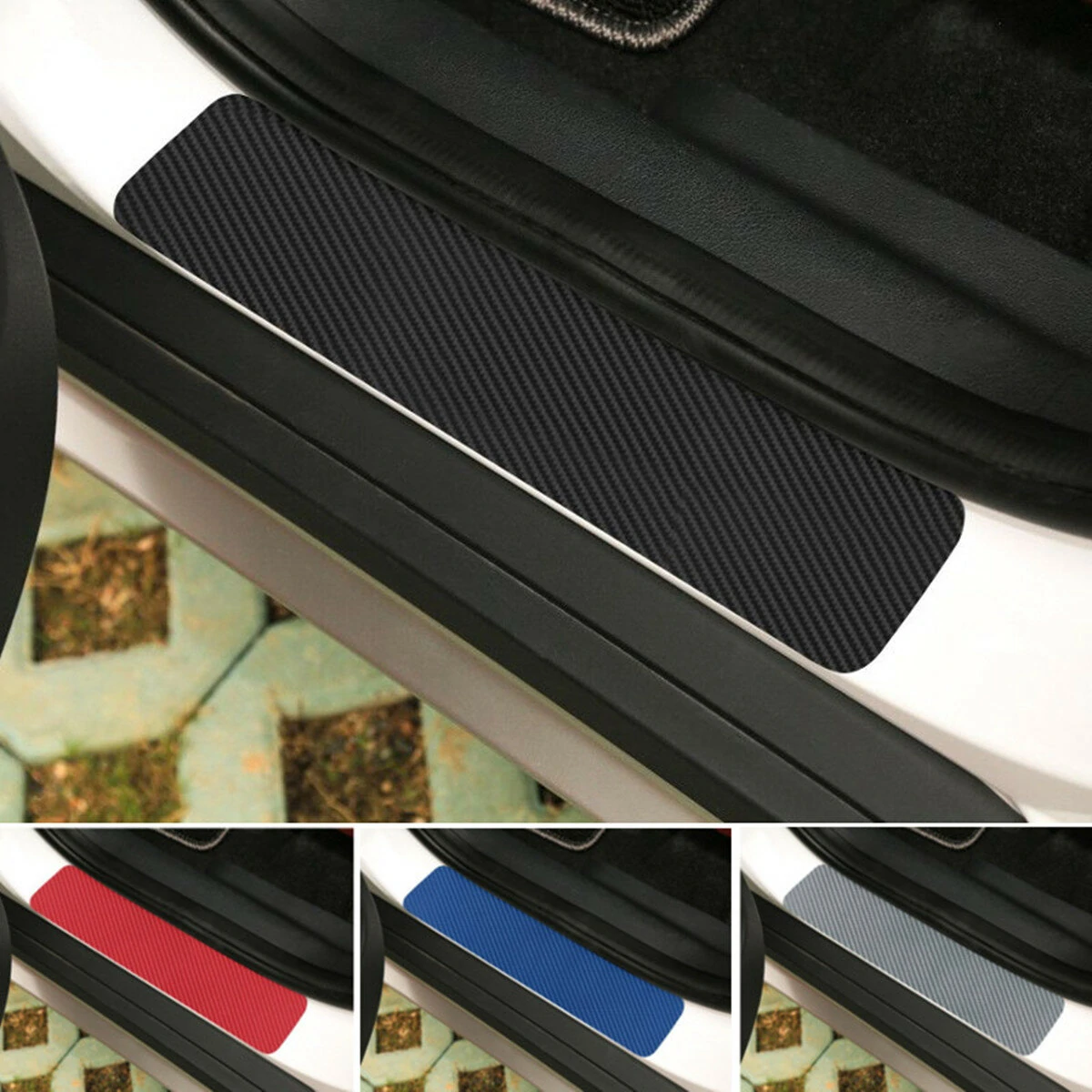 4 stk. 3D-kulfiber ridsefri vandtætte bilklistermærker til dørtrin