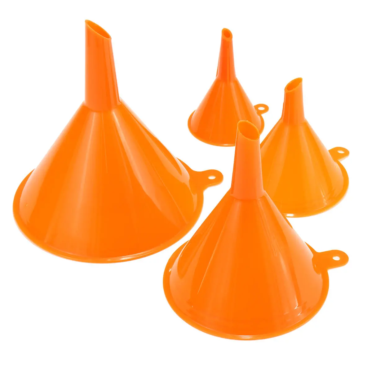 4 stk Størrelser Orange Tragt Motorcykel Brændstof Benzin Vand Olie Værktøjer Lab Hjem Køkken 52/74/96/117mm