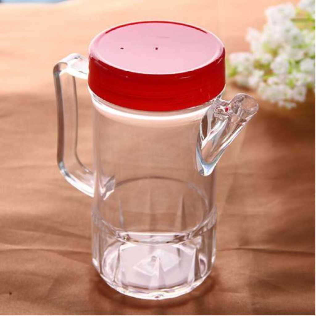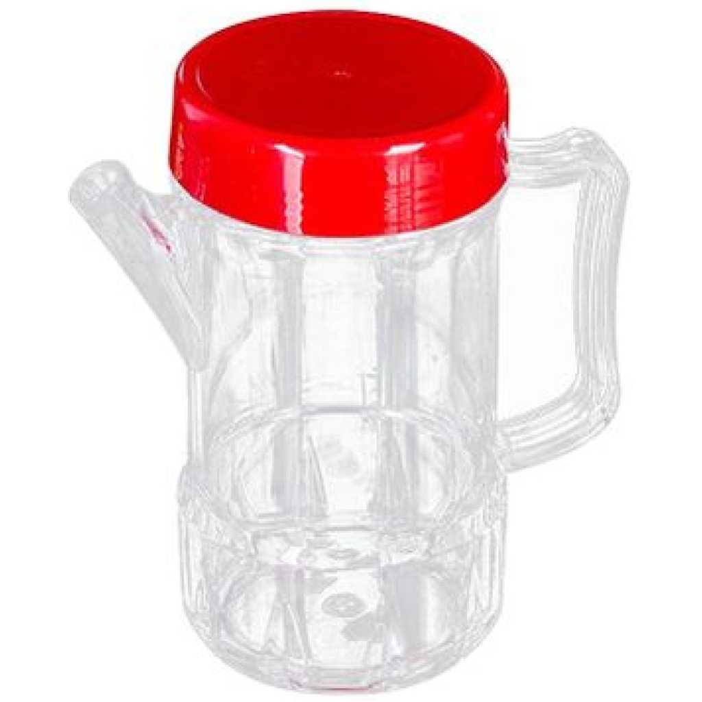 450ml Acrylic Oil Dispenser Honey Pot Vinegar Sauce Bottle For Barbecue- Red. Pour. It is that simple with this Press-and-Measure Oil & Vinegar Dispenser. This useful kitchen gadget is a must-have for everyone who loves to cook, dieters, and those who actually like to make a sensible salad. This oil & vinegar dispenser allows measurement of a precise amount of liquid with the use of only one device – no extra spoons to be dirtied & more work. Meanwhile, you can store your oil or vinegar either on the counter or in the refrigerator for easy access. Made of plastic, this oil dispenser is of quality and safe to use. Its simple transparent design matches well with different styles of kitchen decoration. The acrylic oil dispenser bottle allows for easy controlled pouring, holding everything from soy sauce, balsamic vinegar, olive, and canola oil. Material: Acrylic. Size: 9.5 x 9.5 x 14cm. Capacity: 450ml.Made of food-grade plastic, the oil canis sturdy and durable, totally safe to contain edible oil and other liquid condiments. Transparent design, easy to check the inside liquid or dosage, keep your oils fresher for longer. Suitable for use in your home kitchen and in restaurants.Perfect for oil, olive oil, vinegar, soy sauce, cooking liquor, and other liquid condiments.Convenient use during BBQ, making a salad, baking, frying, grilling, etc.Packing list:1 x Oil bottle