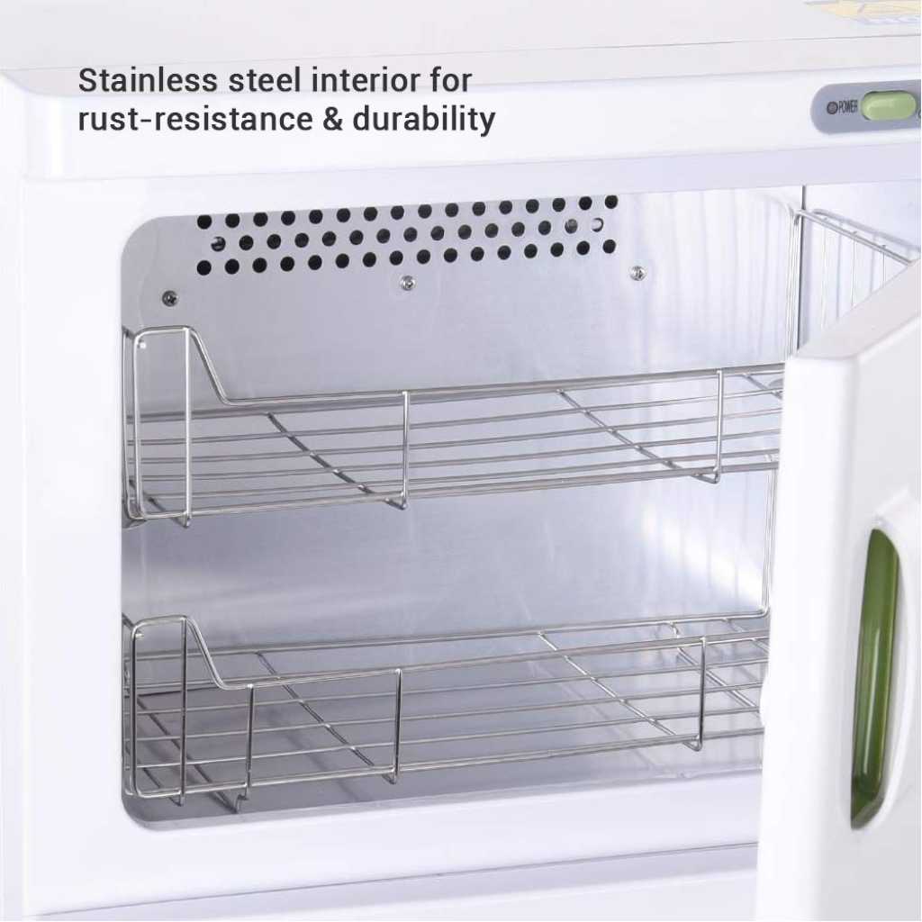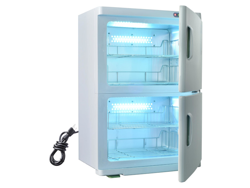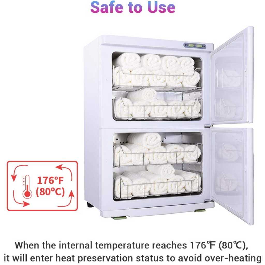 Key Features: CE approved towel warmer, 46L extra large capacity for placing 100-110pcs towels! (Reference towel size:26-4/5″L x 12-1/5″W) Dual cabinet stainless steel inner chamber for better heat conduction, no infection Micro computer temperature control system for preventing over-heat, Average 158℉ Upper and lower shelves to easily & orderly store towels, removable tray underneath to avoid dripping Thoroughly and evenly warms both traditional and disposable towels, not only suitabe for warming towels but also neck warmers and massage stones