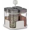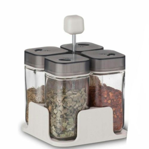 4 Pc Countertop Spice, Salt, pepper Shaker Rack Organizer – Black Great seasoning is at the heart of great cooking SOPRETY Herb and Spice Carousels are built to store, access, and serve your most frequently used spices and keep your favorite seasonings fresh, accessible, and easy to use. Long-lasting The seasoning organizer is made with premium stainless steel and glass sealed jars that not only look great and modern, but they ensure the high quality and longevity of the product that can be used for many years. Space Saving This 12-Jar Rotating Spice Tower display your spices attractively and keeps spices within easy reach while saving valuable counter space. Beautiful Decor Revolving Spice Rack is highlighted by a strong visual presentation of spice and emphasizes a gourmet look and feel. This 2pc set allows you to spice up your meals as it spices up your décor. Practical Construction The range includes glass jars beautifully displayed on sturdily constructed, carousel-style racks–in sizes to meet the needs of any cook–from a basic 12 jar rack to a comprehensive twenty jar carousel. Key Features: Three tired spice storage rack. Holds 4 adjustable spice jars in and neat. Lazy susan 360 degree revolving design. Each jar has a stainless steel. super smooth rotating action and a gourmet look and feel. Jars are dishwasher safe and refillable.