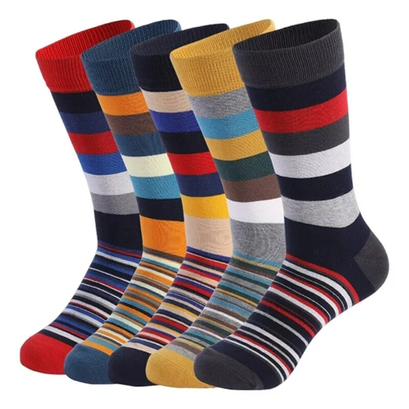 Pouze US$26.99, nakupujte 5 párů pánských ponožek ve větší velikosti s pruhy, vtipné, ležérní, střední trubkované ponožky, prodyšné, elastické, pohodlné na Banggood.com. Nakupujte módní socks online.