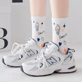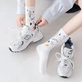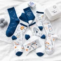 5 par kvinder bomuld jacquard tegneserie bogstavmønstre mode åndbare sokker