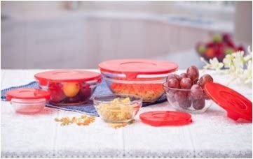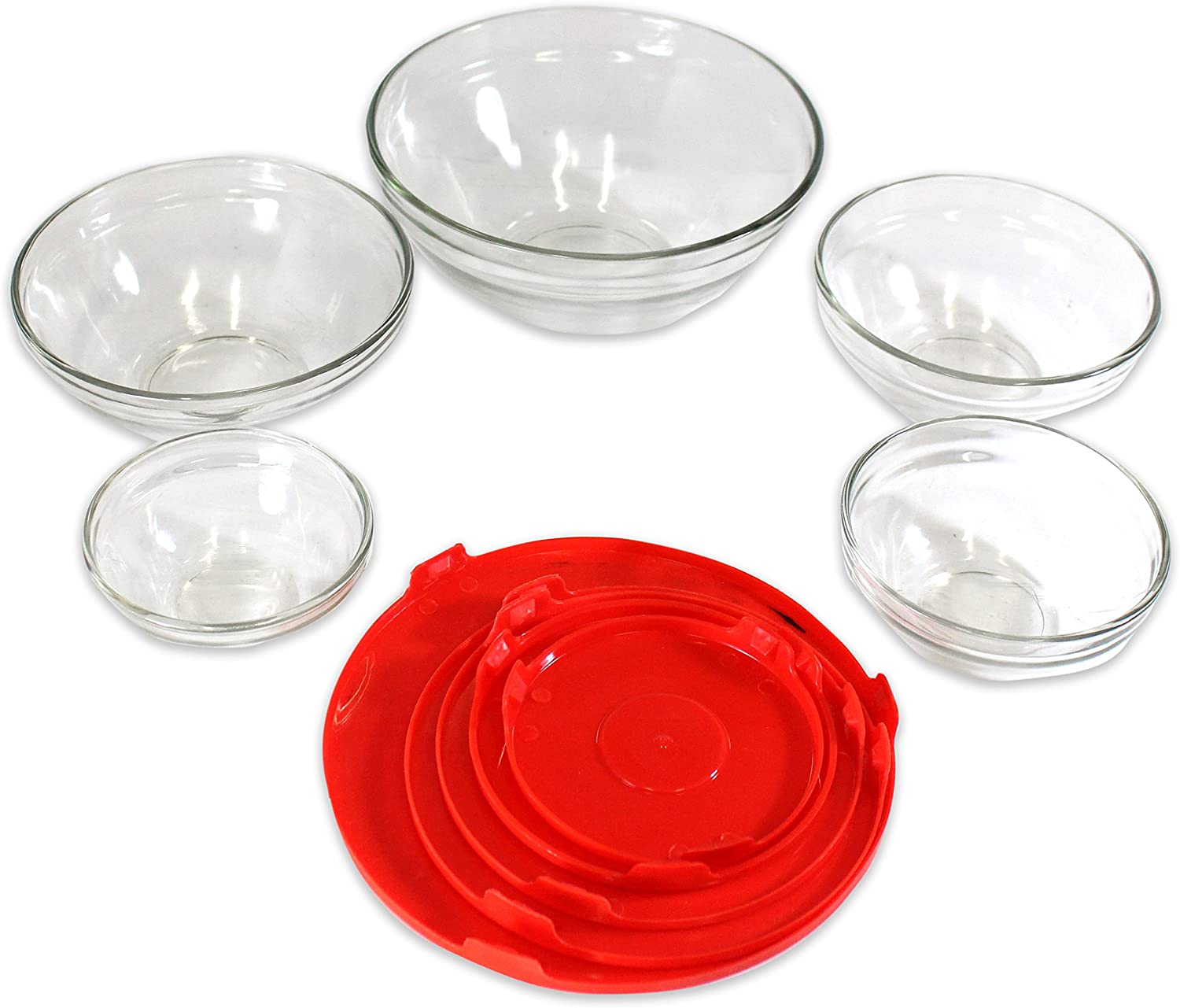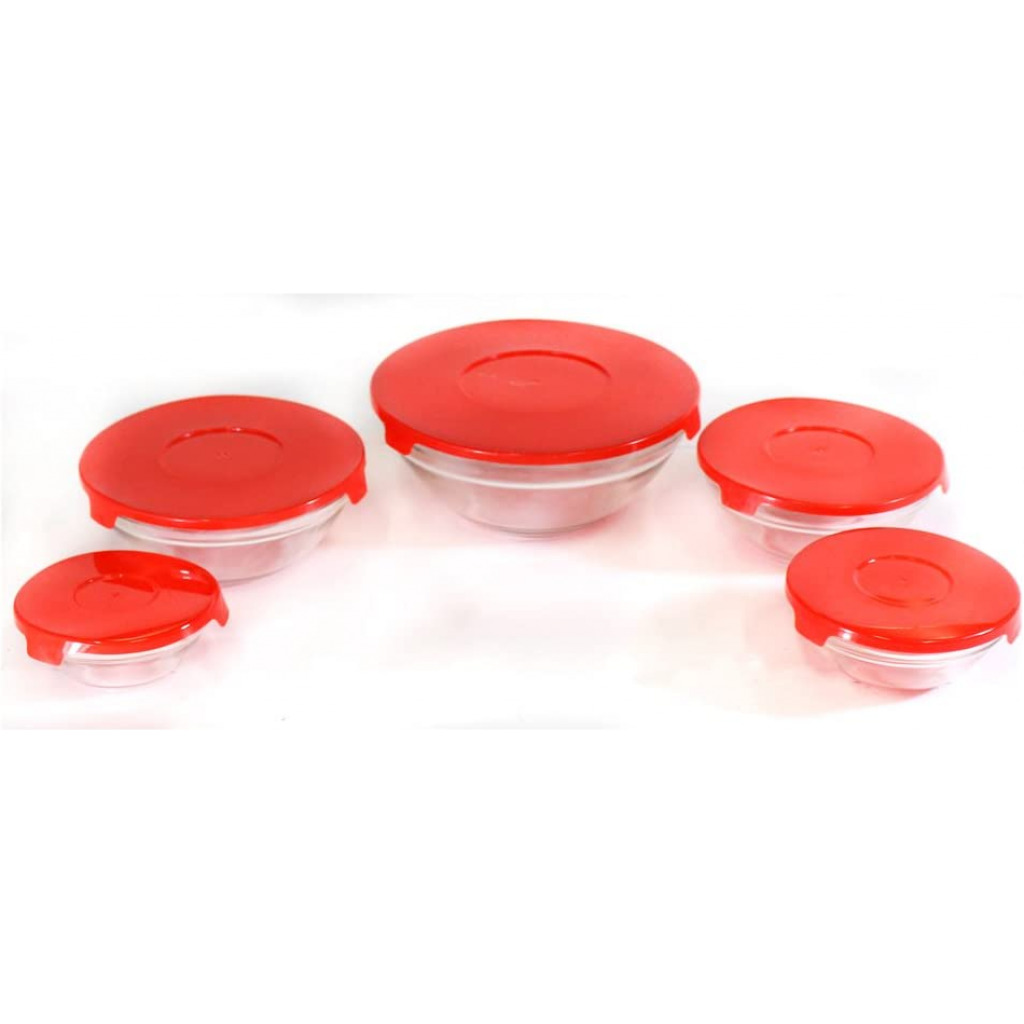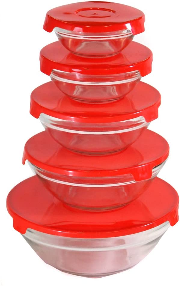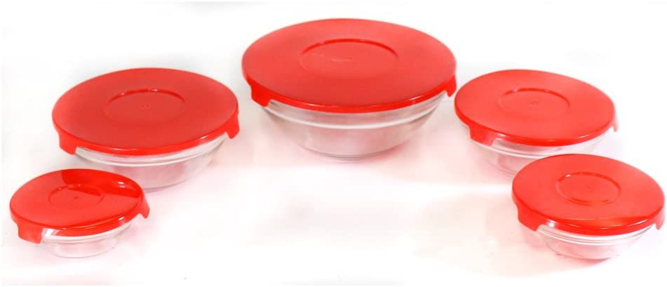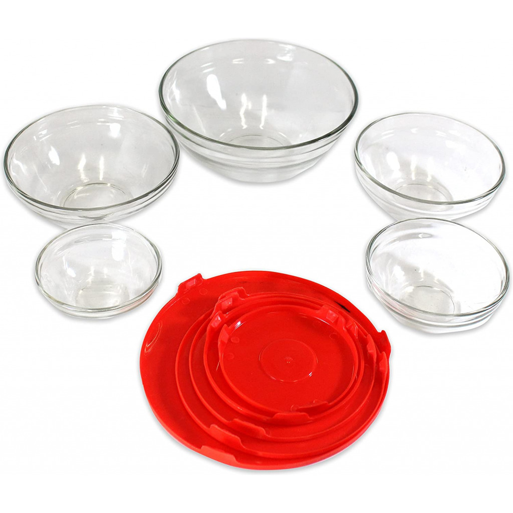 These glass bowls are suitable for even the most elegant meals, or the most casual. They will fit in on any occasion. They come in 5 stacking sizes: 31 ounces, 15, 12- 1/2, 7 -1/2, and 4 1/2 ounce sizes with matching snap down airtight plastic lids. These bowls can go from the microwave to the table to the dishwasher safely. Breakfastt, lunch, or dinner, these bowls will have constant use in your kitchen-5 convenient sizes Great for sauces, melted butter, leftover small quantities-easy to view contents They stack in the cupboard for easy storage-a custom fit lid for each bowl These bowls are made for heating, serving, dining, and storing your food Microwave and dishwasher safe- lids are air tight to keep foods fresh BLACK FRIDAY Specials -Cyber Monday & Holiday Deal