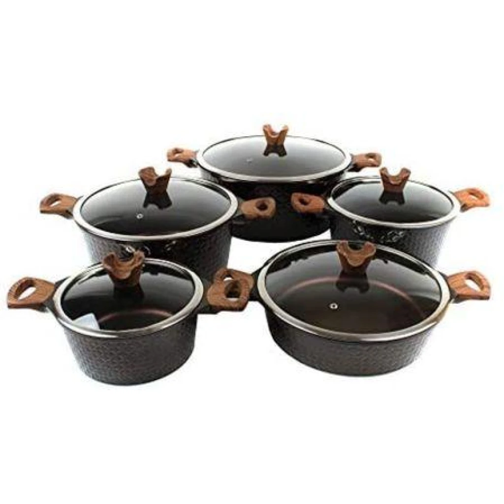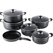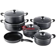 5 Pieces Of Non-stick Serving/Saucepans/Cookware – Black These products are manufactured from premium die-cast aluminum with a long-lasting non-stick coating. The use of the highest quality and appropriate materials in the production process combined with each article being hand-finished guarantees the high quality of the products for a long period. Due to the exceptional coating, the saucepans are the perfect solution for cooking healthy and dietetic food without fat and very easy to clean.