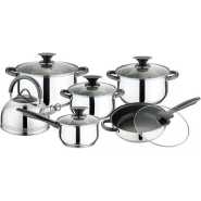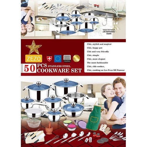 Key Features: 50pcs Stainless Steel Cookware Sets Cooking Frying Pans Pots Saucepan Nonstick- Silver. Handling support handles are partially covered with set material for moving hot pans without discomfort. Frying pan with a strong stainless steel body; cover with exhaust hole; coating pan; suitable for all kitchens Thermo Control cooking your food with one knob cookware helps you find the perfect mix and taste. With easy to read thermo knob, you can check the heat inside your pan and adjust the cooking power accordingly. Product Details: Frying pan 24 x 6.5 cm, saucepan with metal lid 24 x 14 cm saucepan with metal lid 20 x 10 cm diameter: 16 x 8 cm saucepan with metal lid 16 x 8 cm saucepan with metal lid with metal lid steamer 20 x 9.5 cm), bowl (20 cm) with plastic lid suction knob Bakelite Mat x 2 pieces.