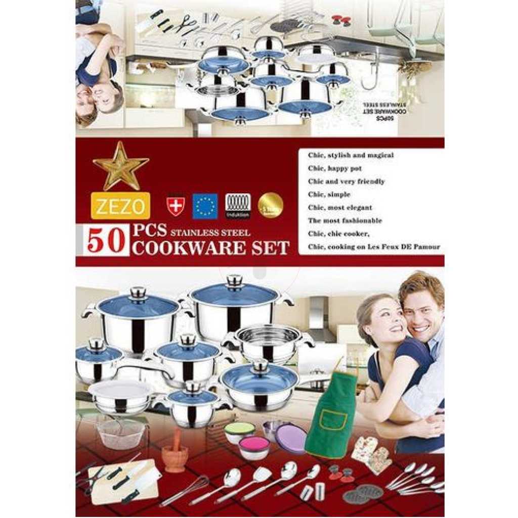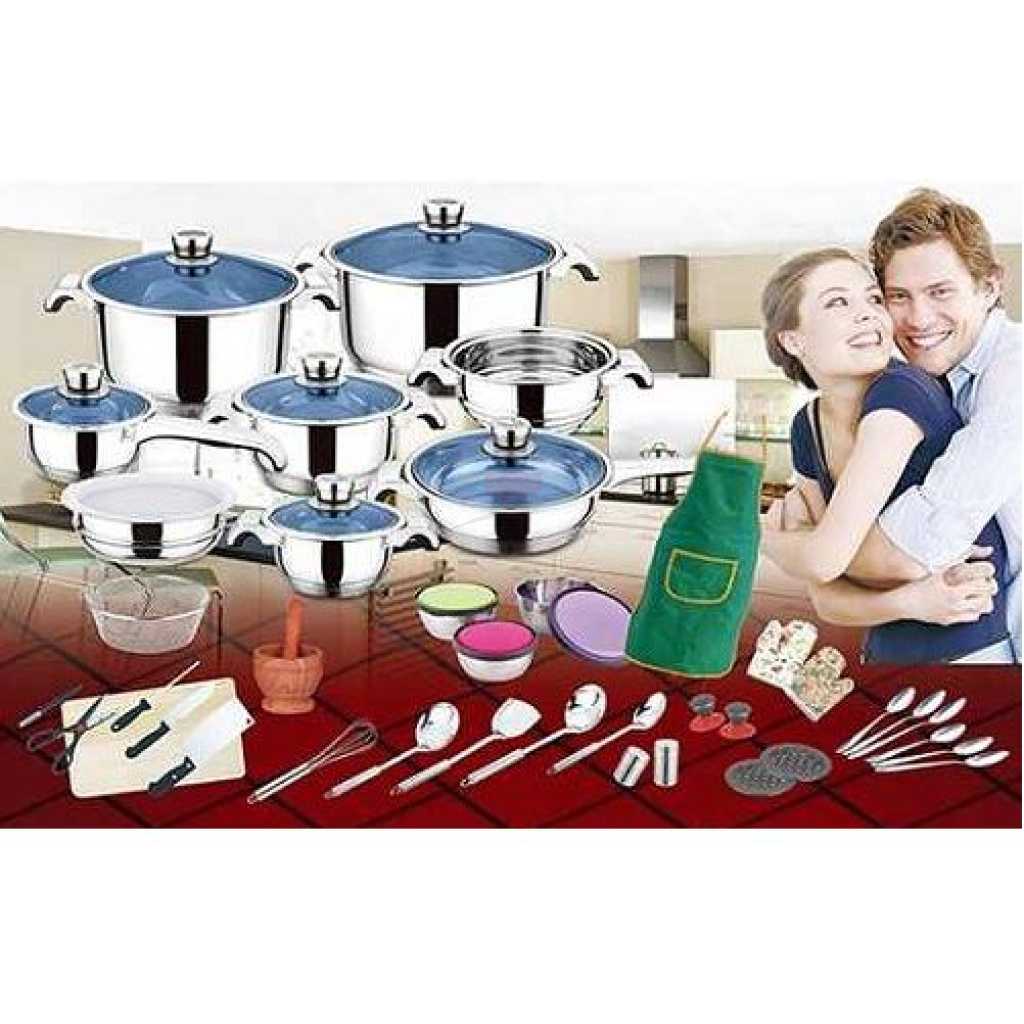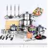 50pcs Stainless Steel Cookware Sets Cooking Frying Pans Pots Saucepan Nonstick- Silver. 1 . Casserole with glass lid: The modern design is easy and easy to serve from the stove to the table. Fixed lids which do not slip ensure that nutrients and flavourings remain protected during cooking. 2. Stainless cap with lid: The saucepan is a basic ingredient for the kitchen. He’s been on duty all day, cooking oatmeal in the morning. The washing up of leftovers for lunch and the cooking of pasta sauce for dinner. 3. Frying pan with lid & grill pattern inside: Design of the frying pan enlarges the cooking surface and makes it easy. The long handle provides a perfect balance and provides exceptional control when the food is shaken lightly. 4.Steam: The stainless steel base provides quick and uniform heating and eliminates heat transfer. This classic steam cooker set offers professional performance, easy use and healthier results. 5. Mixing bowl with plastic lid Perfect for stirring dough and salads of all kinds as well as for many other wonderful dishes. 6. Frying Basket with removable handle Canasta para Freir. 7. Shimmer: Cucharon for Scrurring Slotted Turner Spatula Spaghetti Server Covered for Spaghetti 6pcs kitchen tools1pc scraper plane. 8. 2-part Bakelite substrate & 2-part suction button products stand for a slim, ergonomic Design. the use of each product becomes a joy, and an attractive Enrichment of your kitchen.
