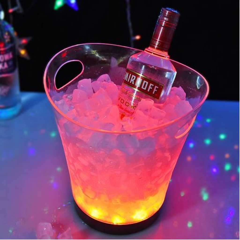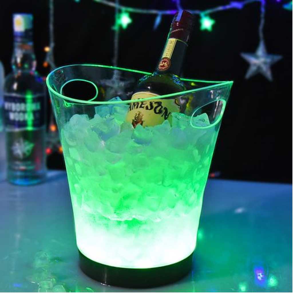5L Led Ice Bucket Color Changing Plastic Champagne Wine Ice Bucket Professional technology of led color changing allows the ice bucket to be converted to a variety of colors at any time, and the color gradually changes to suit every occasion and atmosphere. LED ice bucket is a perfect accessory for a bar, party, club, or any place of amusement for decoration or interspersion. The ice bucket is made from premium quality food-grade PP, extremely sturdy and lightweight, never fear it will snaps under pressure