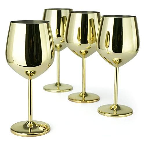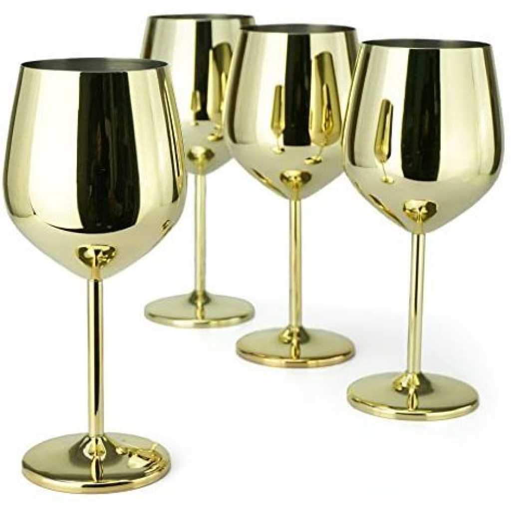 6 Pc, 18.5oz Juice Champagne Stem Wine Glasses Decorative – Gold The modern minimalism style stainless steel wine glasses easily create romance to your tabletop and enjoy a happy time with your friends or lover. CASUAL & CHIC Perfect for a picnic, day-to-day meals, or a lavish dinner party. Drinks stay chilled longer, so they’re a great choice for outdoor entertaining. They also take up less space in the cupboard or in the picnic basket than conventional wine glasses PREMIUM QUALITY & ELEGANCE Made from high-grade 18/8 stainless steel, they feature a beautiful, sleek satin finish while sitting comfortably in your hand WINE GLASS COLLECTION These stainless steel stemmed wine glasses are perfect for serving all your beverages holding up to 18.5 ounces. Perfect for enjoying a glass of your favorite vino indoors or outdoors! These elegant wine glasses are made of high-quality stainless steel with smooth rose gold coating, it not only provides a stylish and elegant outlook but also ensure the max safety for the whole family.