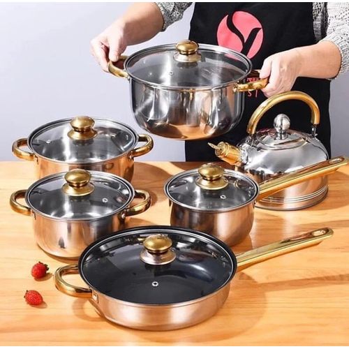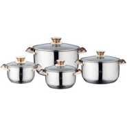 Key Features: Color : Silver Material: stainless steel. Cover material: heat resistant glass. Number of items in a set: 6 Bottom type: 5-layer. Measurement scale: yes. Handles fastening method: riveted connection. Handle type: hollow. Lid with a steam outlet: yes. Metal polishing: mirror / satin. Dishwasher safe: yes.