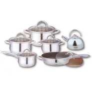The 6 Piece set Saucepans The set contains 6 items: a saucepan with a glass lid 16×10.5 cm; 2.2L saucepan with glass lid 18×11.5cm; 3.0l saucepan with a glass lid 20×12.5cm; 4,0l steel Thickness 0.5 mm Stainless steel special shape, eliminating accumulation of food residues and grease rim preventing transfusion liquids overflowing Termosberegayuschee bottom: the bottom of the five-layer induction with elevated termootdachey Rapid heating of food, long-term retention of heat for cooking sufficiently small quantities of water and oil Minimal loss of minerals, vitamins and taste Suitable for use on all types of cookers, including induction Dishwasher safe