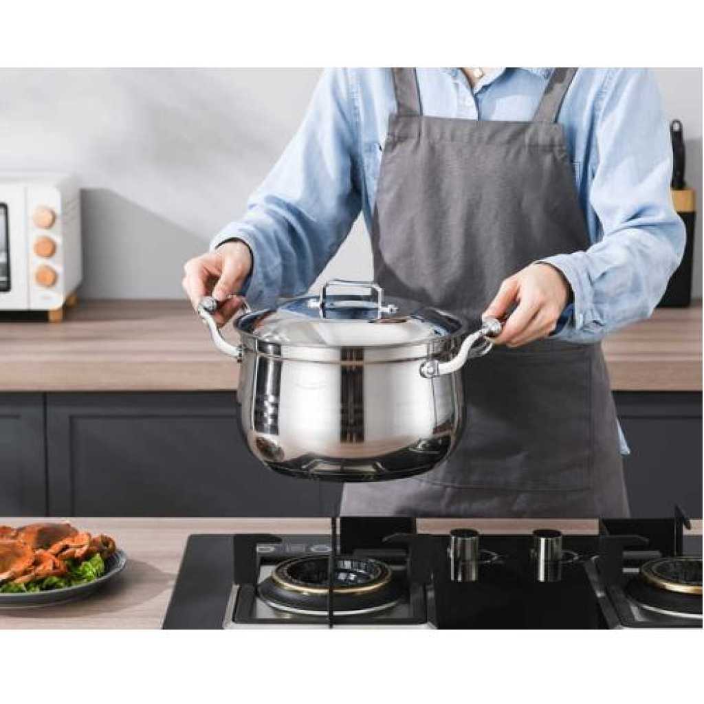 Key Features: 6 Piece 20, 22 & 24CM Stainless Steel Saucepans Cooking Pots- Silver. Color: Silver Material: stainless steel. Cover material: heat-resistant glass. Number of items in a set: 6 Bottom type: 5-layer. Measurement scale: yes. Handles fastening method: riveted connection. Handle type: hollow. Lid with a steam outlet: yes. Metal polishing: mirror/satin. Dishwasher safe: yes.