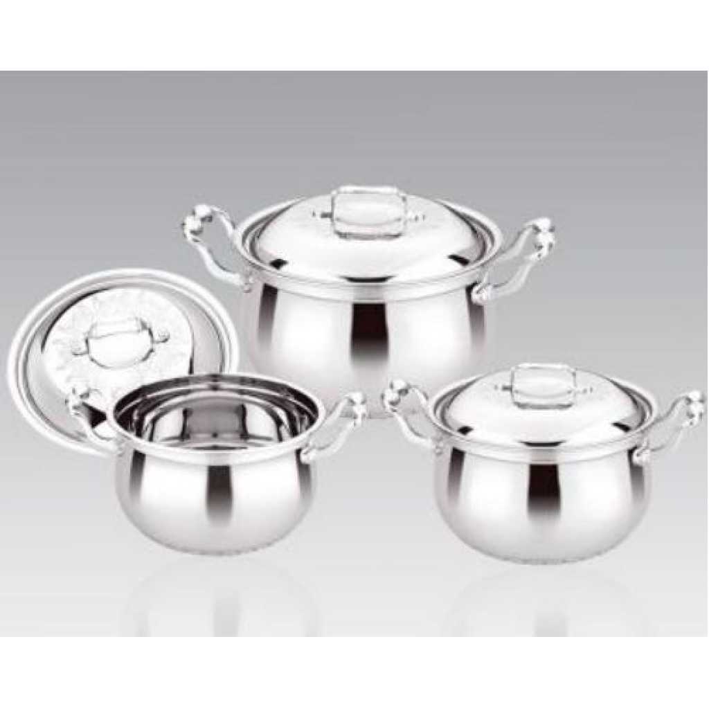 6 Piece 20, 22 & 24CM Stainless Steel Saucepans Cooking Pots- Silver. A set of pots made of stainless steel with a thick, multi-layer capsule-type bottom. The pans can be used on any type of hob, including induction. The outer surface of the pots is matted, and along the top, there is a mirror strip. Heat-resistant glass covers are equipped with a steam outlet, along the edge of the reinforced stainless steel rim to prevent chipping. You can use a dishwasher for washing. The set includes three pots, Cooking pot KORKMAZ Induction Silver pot 9 Piece Set 16×9 cm / 1.8 Lt Casserole, 20×10 cm / 3.5 lt Casserole, 20×22 cm / 24 Care Any dish detergents. Do not wash with abrasive abrasives. Do not use metalized or hard wipes or brushes