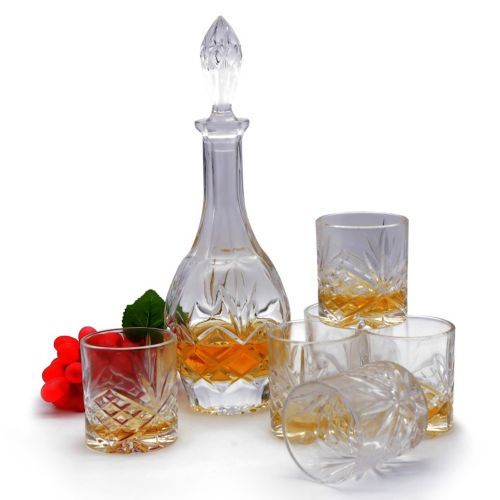 Key Features: Fine crystal set Includes 6 whisky glasses and 1 decanter Stemmed whisky glasses ideal for any kind of liquor. Apple shaped decanter for all liquor types Decanter holds a standard 750 mL bottle of liquor Hand wash recommended