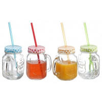 6 Pieces Of Juice Glass Mason Jars Cup Mugs- Colorless These glass Mason jar glasses come with a METAL screw-top lid, striped straw and hold up to 500ml of liquid. They can be used time and time again and are very resilient. Great for BBQs, parties, weddings and picnics – the possibility is endless! Dishwasher safe.
