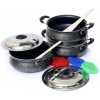 Key Features: 6 Pieces Of Non-stick Enamel Serving Saucepans Cookware Dishes – Black. Size: Same size Enamel pots with granite coating that provides a smooth nonstick surface. With its thick 1.5mm thick enamel coating body, the cooking temperature is rendered uniform over the entire surface. Comes with an extra plastic lid that prolongs the preservation of vitamins, minerals, and aroma. Beauty and elegance are presented in the design of this enamel cooking pot. Low/medium heat is sufficient for obtaining the best cooking results.