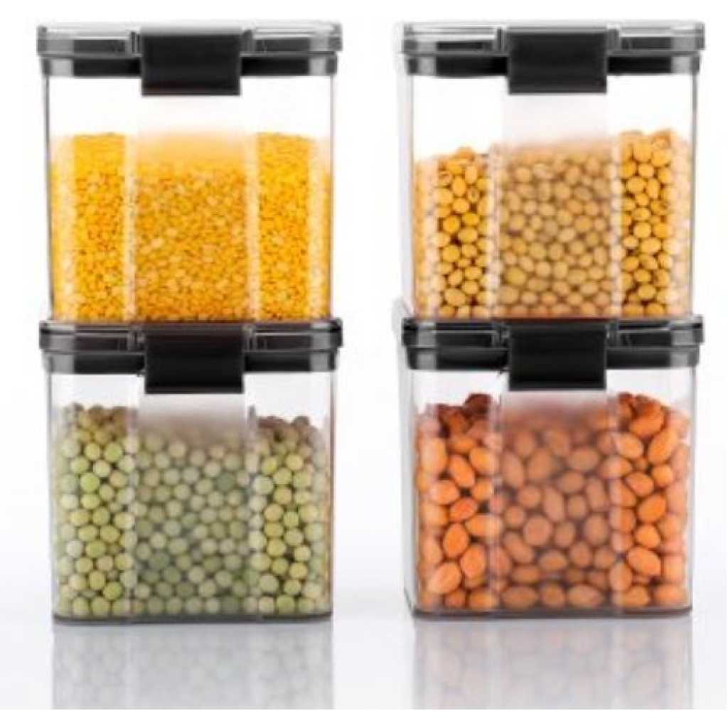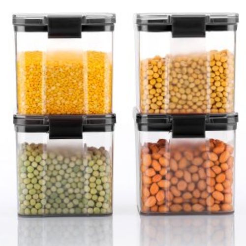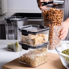Plastic Transparent Plain Storage Box Tins Containers Airtight Design — The rubber seal will stay on in place and perfectly connected to the edge of the canister. This would prevent air to enter, protecting the hermetic seal of the jar. ENLOY airtight canister not only protect the contents from insects and moisture, but also ensure they remain fresh for a long time. Easy to Use and Clean — ENLOY stainless steel kitchen canisters are made with a wide 4.7″ opening which makes it easy to use full size 1 cup measuring scoops. The canisters are dishwasher-safe, however we recommend hand-washing to protect the finish. One Piece Design will not hide dirty. A quick wipe with a damp cloth is sufficient for a light cleaning. Safety — ENLOY airtight canister is made of good quality excellent rubber seals and clasps. It is safe for everyday use. The BPA free silicone gasket have no smelly odour in the process of using. Sweet Design — Clear clamp lid allow to easy viewing of canister contents. With transparent plastic lid, you will save more time. They are great for storing cookies, coffee, flour, sugar, nuts, coarse cereals and more. This practical canisters set is perfect for various occasion including countertop, restaurants, bistros, pubs, cafe, pantry and so on.