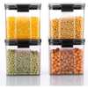 Key Features: Great for use storing cookies, sugar, flour, spices and other kitchen staples Clear plastic lid with silicone gaskets to help preserve stored food items Flip-top lid; locking clamp closure Capacity: 26oz, 36oz, 47oz, 62oz. Care and Cleaning: Wipe Clean With a Damp Cloth