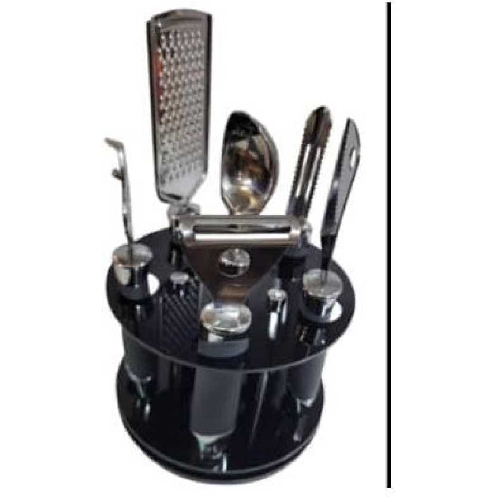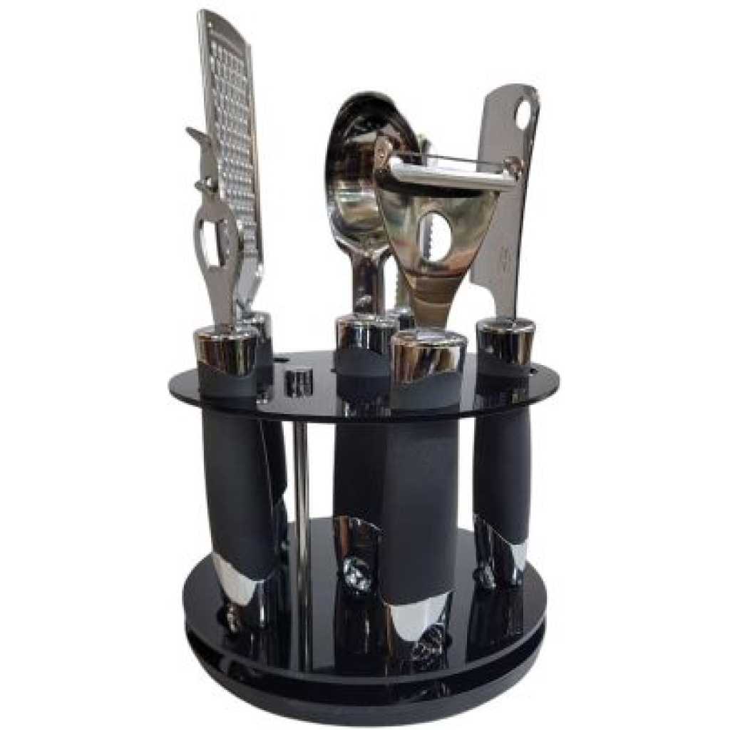 7 PCS Paring Knife Set Paring Knife set includes 7PCS paring knives. It can meet most of your kitchen needs. Keep this set handy at dinner parties or behind the bar to prepare garnishes for your favorite drinks or dishes. The entire collection is made to the highest sanitary standards and it’s ideal gift for family, friends, even pro chef. Precision Forged Blade Kitchen knife set has reinforced sharpness to achieve quick and effortless cutting, improving efficiency. Easy to Clean and Care Wash and wipe up the knife blade before or after use by washcloth. Store in the included knife block for next-time use. We are seeking perfect solutions for each kitchen We’re striving to help you get everything prepared efficiently and easy, you just need to enjoy and finish the cooking process. 7 IN 1 KITCHEN PEELER SET Our kitchen tool set contains; 1 Vegetable and Fruit Peeler, 1 Bottle Opener, 1 Fruit Knife, 1 Egg Whisk, 1 Vegetable Scissors and 1 standing storage base, true gadget organizer makes kitchen life easy and tidy.
