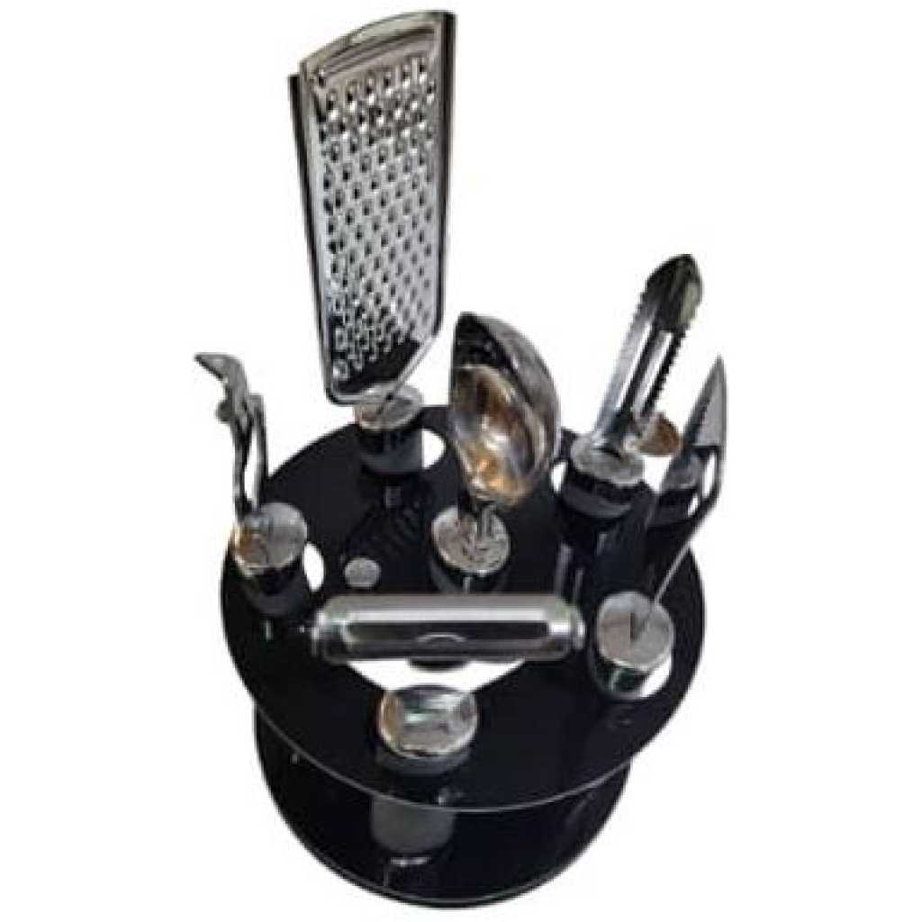 Key Features: Upgrade your kitchen with this 7-piece professional set, featuring a vegetable peeler, egg beater, fruit knife, bottle opener, and scissors with a nutcracker. The integrated storage box keeps your tools organized and accessible, ensuring you never have to worry about missing helpers during your culinary adventures. Create fluffy eggs effortlessly with this balloon-shaped whisk, perfect for whipping and inflating ingredients. The peeler, featuring a sharp and wide rotary blade, allows for minimal resistance while peeling various fruits and vegetables, including apples, cucumbers, potatoes, carrots, and more. Sharp scissors and knive can help you effortlessly slice such as peeling fruit and slicing vegetables, Onions and peppers etc.Sturdy and durable bottle opener help you open the lids of most beer bottles quickly, easily and efficiently. Crafted from advanced stainless steel material that is both rust and stain-resistant, this kitchen gadget set features ergonomic ABS handles, ensuring comfort even during long cooking tasks. This cost-effective set makes a great gift for friends and family who love to cook.