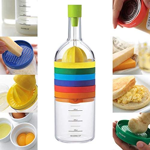 Key Features: 8-in-1 Kitchen Tool Set Multipurpose Bottle Funnel, Flower Vase, Lemon Squeezer, Spice Grater, Egg Masher, Cheese Grater, Cap Opener, Egg Separator, and Measuring Cup. Interchangeable plastic blades. Easy to use crank mechanism. Angled distributor reduces clogging. All parts are detachable for cleaning. Made of plastic and stainless steel. Combines 8 essential kitchen tools. All parts stack together in a bottle. Dimension – Height: 28cm/11.02 inches, Diameter: 8.5cm/3.35 inches. Colors are different for easy recognition.