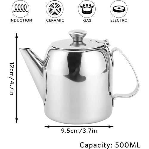 Key Features: 800ml Stainless Steel Teapot Kettle With Flip Lid Water Jug Perfect Pour Spout, Silver. Perfect inverted spout: Teapot with flip lid, no overflow spout, ergonomic handle, comfortable to hold, open style, easy to refill and easy to clean. Elaborately built: The tea pot is made of high quality stainless steel, which has been carefully processed to make it more durable, not easy to deform, mirrored and polished, and reliable in use. Can be washed in the dishwasher: The stainless steel teapot is light in size and weight, easy to carry and store, and can be washed in a dishwasher, which is easy to clean. 2 medium capacity options: Teapot with lid, capacity 20oz/32oz, suitable for the production and service of milk, tea, coffee, and beverages. Simple appearance: Simple and elegant appearance, very suitable for table decoration, buy family use or gift to friends.
