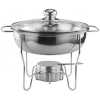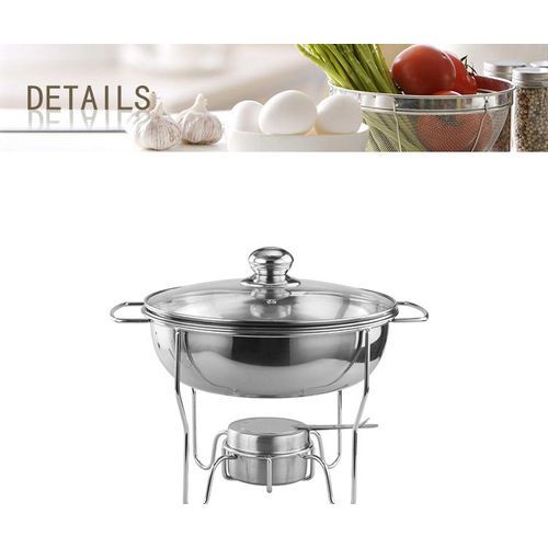 8L Stainless Steel Small Round Chafing Dish Food Warmer Hot Pot Outdoor Camping Alcohol Stove Features a stainless steel, with a mirror-polish finish for a unique look, this SUPER DEAL chafer is designed for everyday use at your finest catered events. Use it to create a beautiful buffet setting without breaking the bank. Plus, whether you’re serving up a delectable egg bake or your signature side dish, this chafer will present it in style. Durable Construction Durable stainless steel construction ensures this chafer is built to withstand everyday use while providing a timeless appearance that blends in with your classic decor. Mirror Finish Each chafer features a highly-polished mirror finish that will shimmer in the ambient lighting of your venue. With its high-quality finish, this chafer will add to the presentation value of any of the sides or entrees that you are serving! Sturdy Handles A sturdy handle on the cover makes for efficient service, while two handles on the chafer stand ensure easy transport. Broad Legs For optimum stability, a total of three broad, evenly-spaced legs keep the chafer sturdy on your buffet line. Elevated Fuel Stand The fuel stand is positioned close to the water pan. This helps maintain your food’s serving temperature for hours.