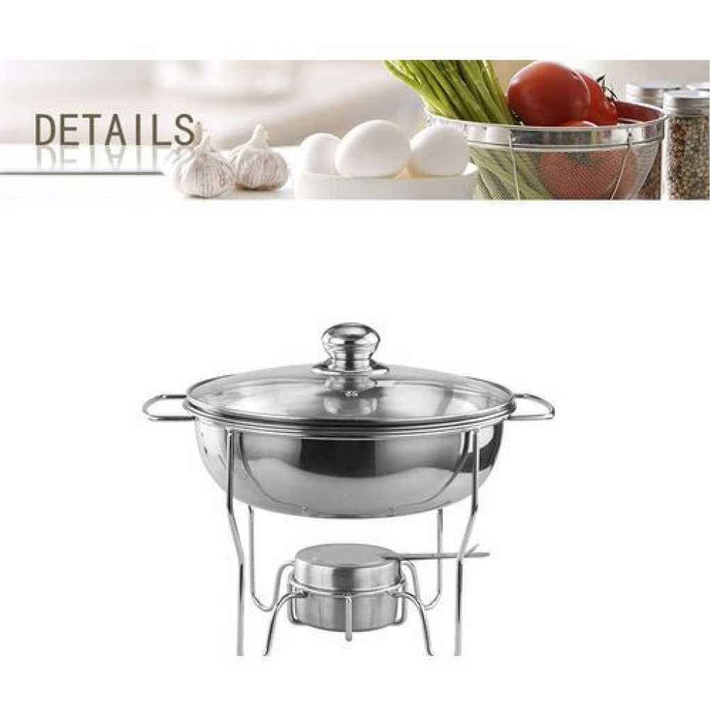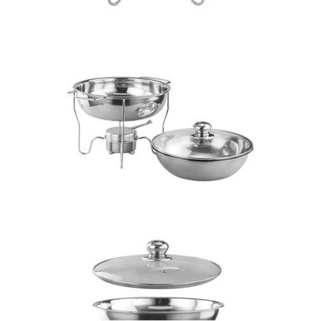 Key Features: 8L Stainless Steel Small Round Chafing Dish Food Warmer Hot Pot Outdoor Camping Alcohol Stove Durable Construction – Made completely out of corrosion-resistant 18/8 stainless steel, the stainless steel is a heavy commercial grade, yet it is still lightweight to lift, this chafer is built to withstand the demands of your catering outfit or buffet line. With durable stainless steel construction, its elegant and spacious design adds long-lasting serving functionality and sleek style to any party or catering event. Even Heat Distribution – Maintains proper food temperature for the best cuisine with this heavy-duty 5 quart buffet chafer. Place your heat source in the fuel holder, install and fill the lower pan with water to evenly distribute heat, and place your food in the upper pan. This durable stainless steel chafing dish maintains foods at just the right temperature and can keep food hot or cold for hours. Considerable Details – Features a heavy-duty stand to provide stability. The elevated shelf positions heat close to the water pan, maintaining your food’s perfect serving temperature for hours. This elevation also minimizes exposure to the flame, ensuring guests’ and staff’s safety. One of the biggest advantages of this chafer is that you can serve directly from the oven or stovetop using the wide stainless steel handles for easily transporting the dish. One Complete Kit – Complete with a water pan, food pan, cover, and fuel holders, this chafer has everything you need to keep your hot food items warm throughout the entire length of your reception, banquet, or catered event. This chafer features a divided food pan for ultimate versatility and allows you to being serving right away! The Perfect Addition – Get out of the kitchen and into the cooking spotlight. Stainless steel ensures superior strength. NEVER rust, tarnish or corrode. To draw your guests in, a mirror finish on the lid and body of this chafer beautifully picks up on and reflects out, your venue’s ambient lighting for a glamorous presentation. 4.8 litres