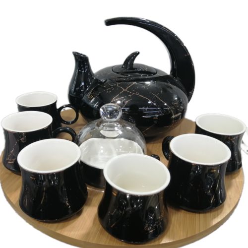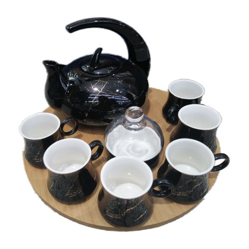 8Piece Cuppucino Tea Coffee Mugs Cups, Teapot, And Bamboo Tray Set- Black. Keep warm at any time with a hot cup of Coffee. Coffee also improves Energy Levels and Makes You Smarter. Can Help You Burn Fat. Can Drastically Improve Physical Performance. Contains Essential Nutrients. May Lower Your Risk of Type 2 Diabetes. Includes: 1 Teapot 6 Teacups 1Tray