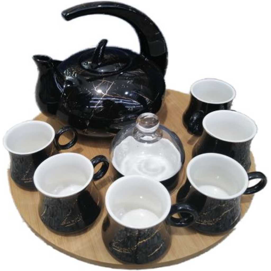 Key Features: 8Piece Cuppucino Tea Coffee Mugs Cups, Teapot, And Bamboo Tray Set- Black. Color: Black High-quality Ceramic 6 Pieces Coffee set Has a Ceramic tray for easy service Great for daily use