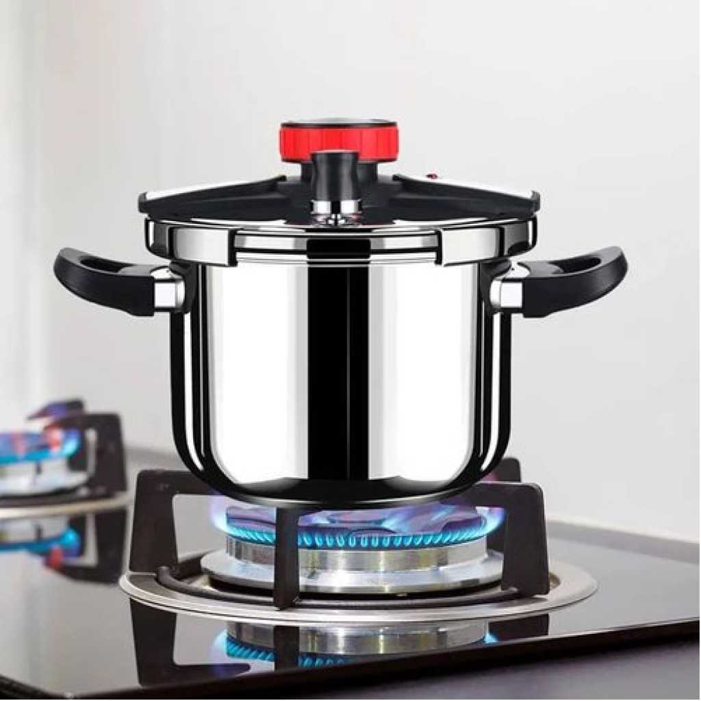 [Safety First]Our pressure cooker ensures safety with multiple protective features. The rotary locking system allows smooth lid operation, with dual protection from the exhaust and pressure relief valves to prevent venting issues. The intelligent safety valve locks the lid under pressure and releases it if necessary. A thickened clamp lock, silicone ring, and anti-scald handle offer explosion prevention, heat insulation, and secure handling for worry-free cooking. [One-handed Lid Opening]Compared to traditional pressure cookers, this model features a significant innovation with its rotary lock system, allowing you to open and close the lid with one hand for ultimate convenience. [304 Stainless Steel Material] This 12QT pressure cooker is made of 304 stainless steel, with a thickened pot body that is highly durable, wear-resistant, and capable of withstanding high temperatures. It also has excellent rust and corrosion resistance. The food-grade material ensures safety, and the inner pot has a mirror-polished finish, making it easy to clean and offering a sleek, modern look that fits any kitchen. [Saves 70% of Cooking Time] This pressure cooker is significantly faster than electric pressure cookers or traditional pots. With a three-layer composite energy-concentrating bottom for rapid heat conduction, cooking rice takes only 5-7 minutes, soup can be prepared in 10-13 minutes, and meats are tender in just 10-12 minutes, greatly reducing cooking time and allowing you to quickly create delicious meals. [Suitable for Various Kitchens] While this pressure cooker is best suited for open flames, it is also compatible with induction cookers, ceramic stoves, gas stoves, and electric stoves. Its energy-concentrating base ensures versatility, accommodating various heating methods without issue.