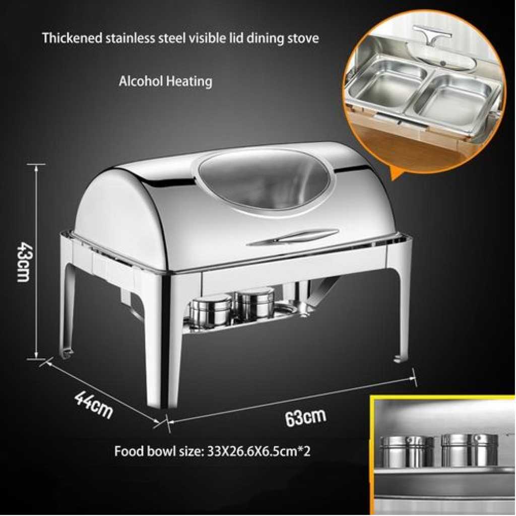 Buffet Tray and Food Warmer – Buffet Tray Buffet Set, Buffet Server and Warmer, Buffet Tray with Cover, Tray Warmer, Buffet Warming Tableware Display Rack, Stainless Steel Buffet Tray 1. Configuration: Stainless steel base + stainless steel food Basin+stainless steel basin+stainless steel lid+stove base Model; full steel lid/visible lid Capacity: rectangular 9L/round 6L 1. Full flip-top insulated dishwasher HD Mirror polished – electrolytic process, corrosion-resistant, easy to clean 2. Enlarged transparent window – thickened tempered glass cover is made of high-temperature-resistant tempered glass and stainless steel. An enlarged high-definition see-through cover is used to make the delicious food clearly visible 3. All-steel thickened material composite structure, voltage-stabilizing polymer temperature locking, uniform heating, precision polishing and bright surface technology, beautiful and elegant 4. The buffer resistance axis can be half-flip at 90° or fully flipped at 180°. After tens of thousands of It still rotates freely and smoothly after this test, and it flips without noise and is super durable!
