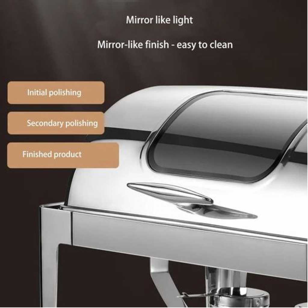 Key Features: Buffet Tray and Food Warmer – Stainless Steel Frame + Stainless Steel Crock/Water Bowl + Stainless Steel Lid ensures your food is always at the optimal temperature during your meal. Not only does it provide stability, it also adds a touch of elegance to your dining environment Stainless Steel Wok and Wok Warmer Set – Made of thickened stainless steel, it has excellent heat retention properties to keep your food at the optimal serving temperature for a long time. If you need to keep it warm, pour hot water into the deep pot; if you need to cool it, add enough ice to the deep pot. Stainless Steel Dining Table Set – 9 / 6 Large capacity can hold the food your guests need, perfect for serving food and keeping it warm. Whether you’re hosting a dinner party or a family gathering, present your food professionally! Food warmer for banquets, buffets, hotel breakfast areas, brunches, catering, wedding receptions Do-it-yourself grill and space heater with cover – Do-it-yourself grill is easy to carry and transport, heated with alcohol, suitable for indoor and outdoor use, removable design provides more convenient storage space, easy to clean, dishwasher or dishwashing liquid safe Cleans without leaving stains! Stainless Steel Banquet Dinnerware, Catering Scroll Coffee Table Set – The smooth surface enhances the overall beauty, and the bright polished mirror shines under the light environment, creating an elegant visual effect, making these tea trays eye-catching in any dining environment, winning you More compliments from dinner guests.