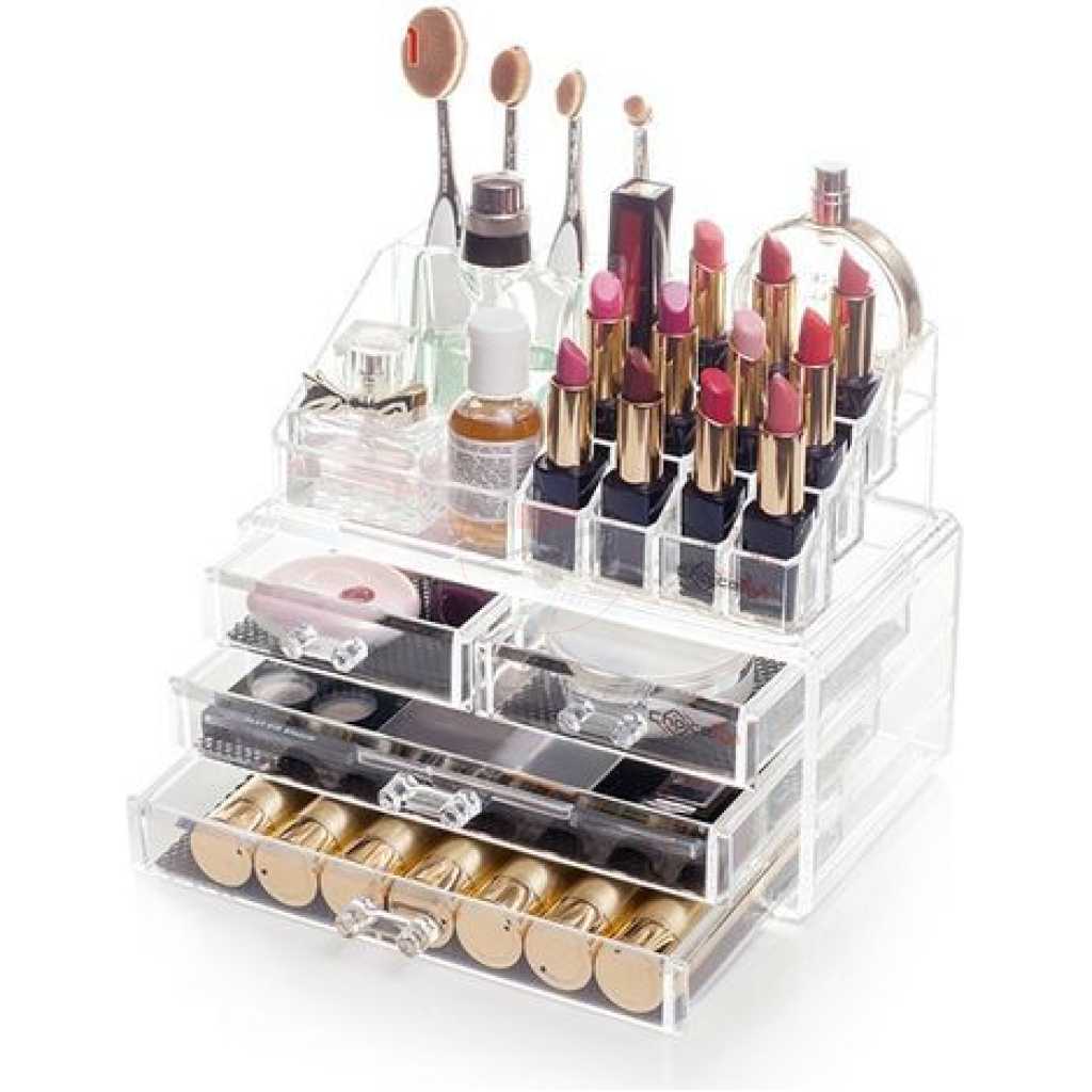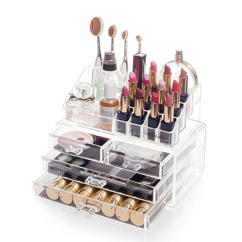 Acrylic Cosmetics Makeup Organizer Storage Box Drawers- Clear. 1、The top section contains 4 compartments of various sizes and a lipstick rack for holding up to 12 lipsticks. 2、This acrylic jewelry & makeup 4 Drawer organizer is perfect for organizing lip liners, eyeliners, makeup, lip glosses and jewelry, and more. 3、It’s a space-saving accessory that keeps your makeup neat and organized. 4、Material Acrylic: Acrylic is a useful, clear plastic that resembles glass. But it has properties that make it superior to glass in many ways. It is many times stronger than glass, making it much more impact resistant and therefore safer. Notice: ※Although it has a hard and clear surface, please avoid sharp scratches to keep its aesthetic. ※Acrylic also insulates better than glass or plastic, but please don’t close to the source of ignition to avoid damage. ※Cosmetic organizer isn’t an Anti-Pressure product, please don’t place too heavy articles.