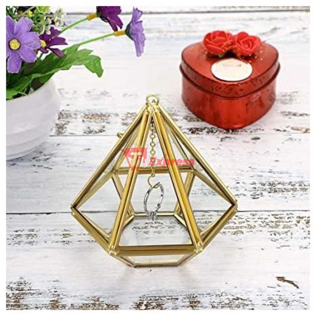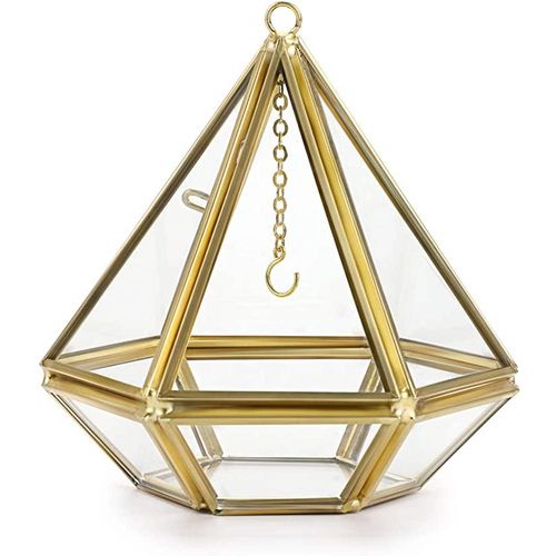 Acrylic Ring Display Holder Geometric Jewelry Box Wedding Gift Box Hanging Prism Stand Proposal Ring Display Case (Diamond Shape) Most girls and women like romance, and surprises…a small gift can make her happy all day long Do you want to surprise her on special days like birthdays, anniversaries, or Festivals …?Are you looking to add a special touch to your proposal, engagement, or wedding? Well, our uniquely designed ring box is the ideal choice! Features: – Our modern geometric triangular pyramid ring box is sturdy, and not easily broken; – Each wedding ring box is carefully made and precision cut by a craftsman; – The ring holder is open style, and a hook is available for you to hang the ring or other items easily; – Unique design great accessory for weddings, engagements, parties, and home decoration; -This jewelry box is enclosed design, and can safely hold wedding rings, engagement rings, anniversary rings, earrings, Valentine’s Day gifts, white day gifts, and more; – Perfect as a wedding gift, bachelorette gift, bridesmaids’ gift, or Christmas gift. Specification: ✬Material: Metal+Glass ✬Color: Gold ✬Size (L*W*H) :3.94″x 3.94x 3.74”/ 10 x 10x 9.5cm ✬Net Weight: 0.38 lb / 175g package:1xPolygonal Prisms Glass Ring Box Clear Glass & Beautiful Gold Metal – This ring display holder is made of sleek glass and premium metal, durable quality. The metal frame is carefully finished with beautiful gold color, clear glass design allows you to see all sides of your gift box. Creative Design – Unique polygonal prisms design, gold metal frame, and clear glass, modern art design style make it looks special. Elegantly suspend the wedding rings in the middle of the Prism by placing them on the dainty chain and hook that drops down from the top of the holder. Each ring box has 1 opening like a small door with a little bolt, it’s more like a small glass house for your ring, So cute! A Creative & Sweet Gift for Girls or Women – Perfect as a storage case for earrings, rings, necklaces best gifts for girls and women, ladies, girlfriend gifts, mothers Day gift ideas, and more. Also, use it as a wedding ring bearer box or engagement gift keepsake! Surprise her with this interesting ring box! ( Jewelry not included ) Practical & Unique Decor-This pyramid ring stand is enclosed, so you can toss small pairs of earrings and other things into the holder for keeping, Can use this box in your bathrooms or in the kitchen where next to the sink, to keep your jewels getting wet. It is so unique and looks like a piece of special decor that can light up your place and brighten everyone’s eyes Portable & Easy Clean – Length:3.94 inches, Width: 3.94 inches, Height:3.74 inches; Net Weight: 0.38 lb / 175g; Please clean the ring box with glass cleaner and a soft cloth.
