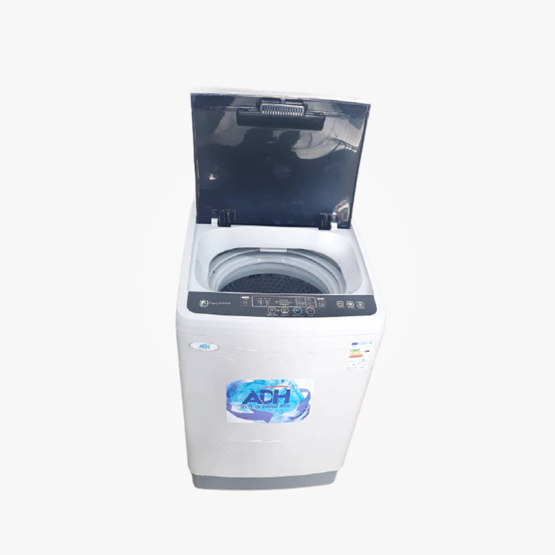 ADH 8kg Automatic Washing Machine – White The ADH washing machine Its state of the art sophisticated technology offers advanced functions and style to spare. It has a 60 minute time wash and a 15-minute spin. It has a see-through transparent window that allows you to see your laundry process. It also comes with a 2-way lint filter and a drain hose protection. SPECIFICATIONS Color : Silver Model : New Product Line : Washing machine Weight (kg) : 18